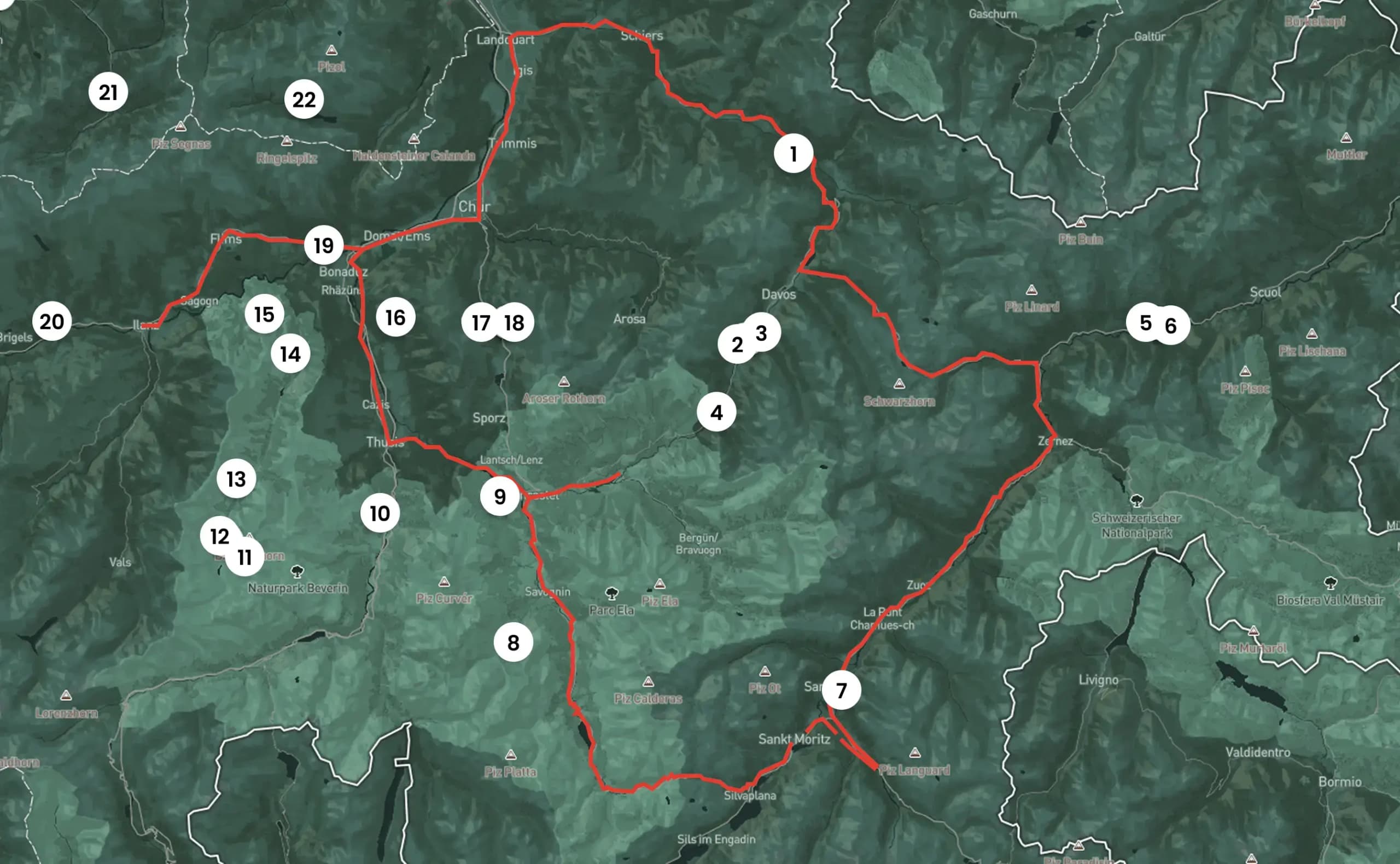 On the Alpine Circle round trip through the Grisons mountains, you will discover the four most popular sights in Graubünden: the Swiss National Park, the Diavolezza Glacier World, the Landwasser Viaduct of the Rhaetian Railway and the Rhine Gorge, also known as the Swiss Grand Canyon. In addition to these four main attractions, there is of course much more to discover along the route. And the best thing is: the Alpine Circle can be started without any complications, without registration or booking.