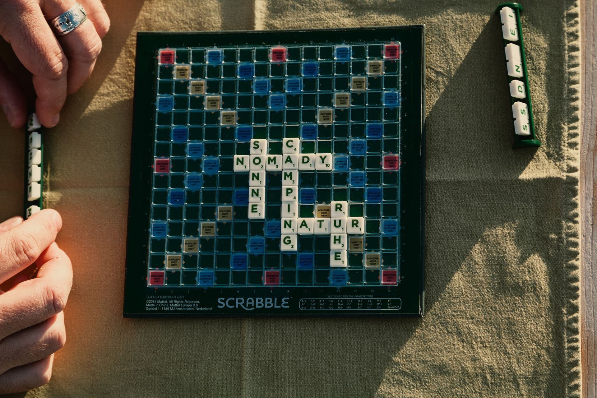 Ein Klassiker, der in jede Camping-Spiele-Kiste gehört. Wer aus seinen gezogenen Buchstaben-Steinen die besten Wörter kreieren kann, ist auf gutem Weg, das Spiel für sich zu entscheiden. Das Spiel macht es dank Aktionsfelder, auf denen man sein Wort und seine Buchstabenwerte vervielfachen kann. Die Reiseversion von Scrabble ist empfehlenswert. Das Spielbrett ist mit einem Gitter versehen, damit sich die Buchstabensteine nicht verschieben können auf einer schrägen Unterlage. Das Spiel lässt sich gut zu zweit oder zu viert spielen.