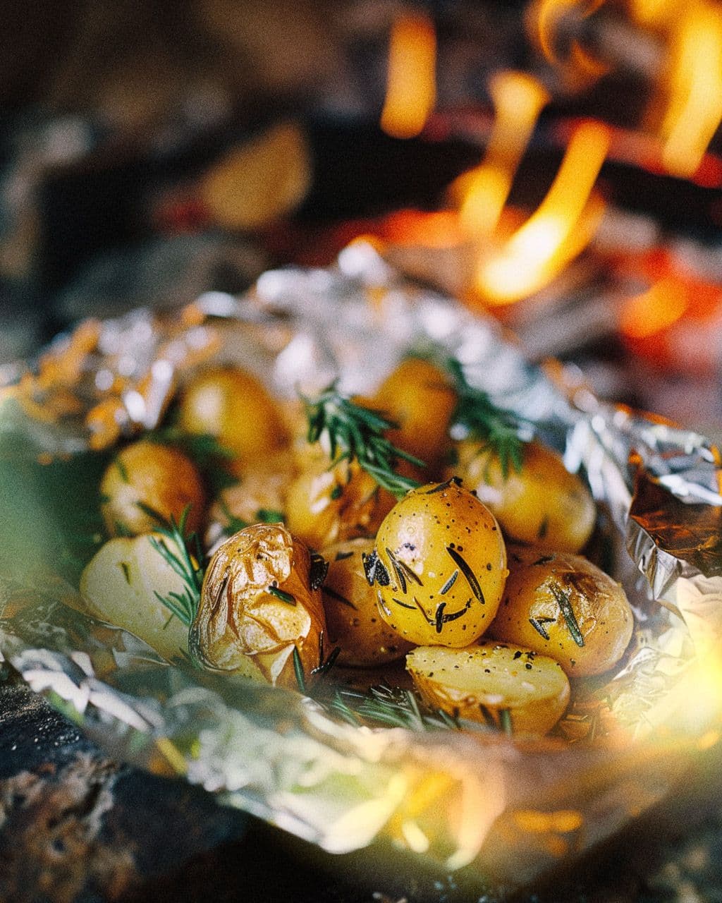 Zutaten: Kartoffeln, Olivenöl, Salz, Pfeffer, Rosmarin Zubereitung: Kartoffeln in Alufolie wickeln, mit Olivenöl, Salz, Pfeffer und Rosmarin würzen, und dann direkt in die Glut legen. Nach etwa 20-30 Minuten sind sie fertig und können genossen werden.