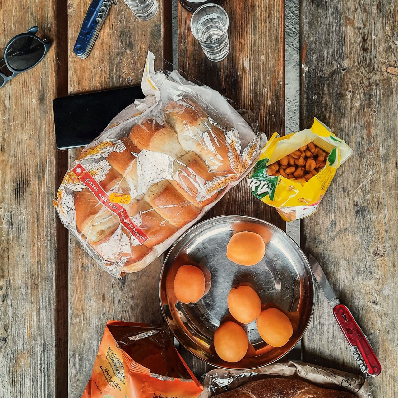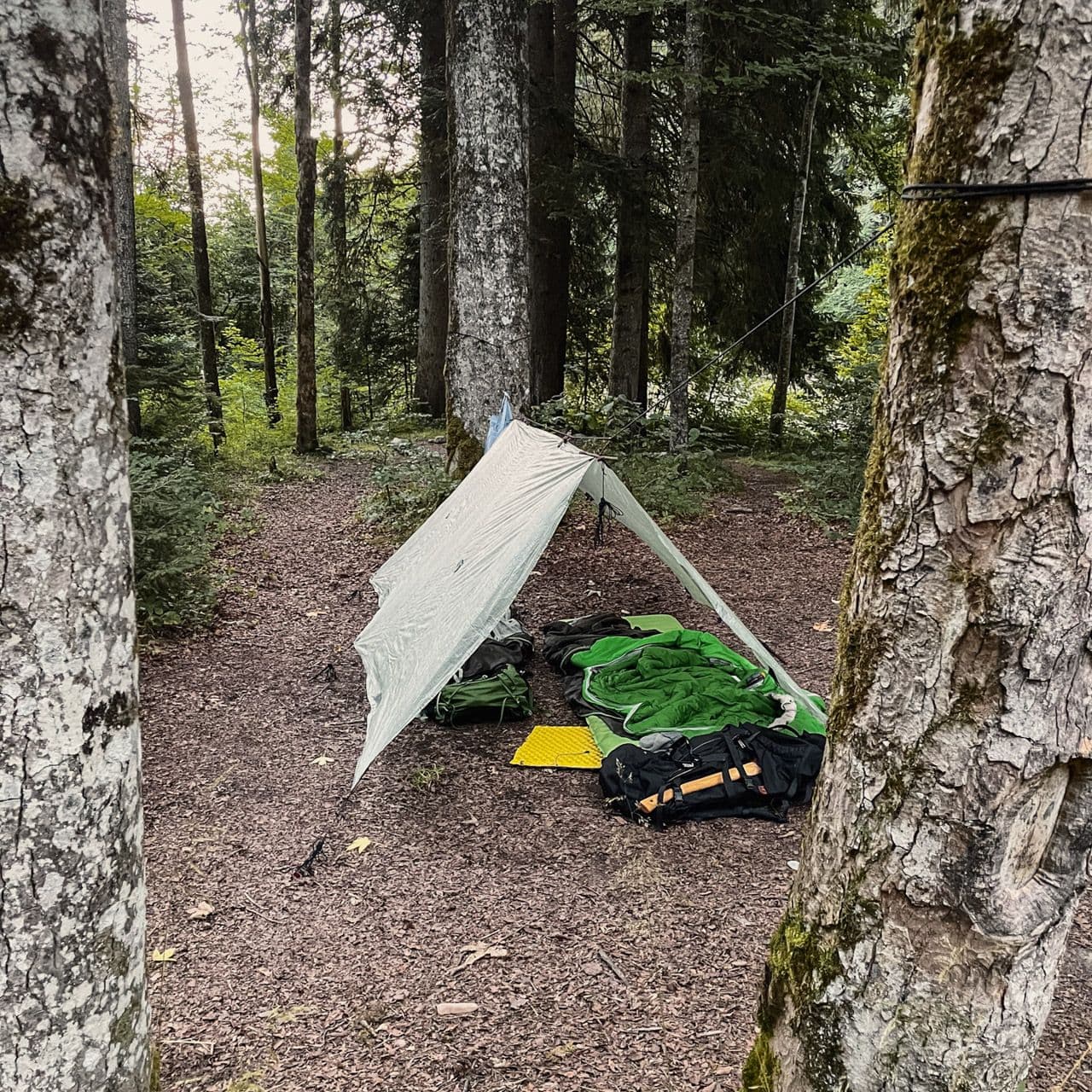 Ein klassisches 5-9 Mikroabenteuer stand bei uns auf dem Plan, sprich montags nach der Arbeit direkt vom Büro in Einsiedeln los und am Dienstag in der Früh dann zurück ins Büro. Die Stunden dazwischen verbrachten wir aber anders als üblich. Wir recherchierten etwas und fanden eine Grillstelle in der Nähe, die auch ein WC hat. Ein bisschen Luxus darf ja schließlich sein. Mit dem Bus ging es in die richtige Richtung und anschliessend zu Fuß bis zu "unserer" Grillstelle. Neben der schönen Lage am Waldrand war unser Highlight auf jeden Fall die überdachte Plattform als Schlafplatz, denn ein Zelt packten wir bewusst nicht ein. Den Abend liessen wir am Feuer ausklingen, es wurde gegessen, getrunken, getratscht und gelacht. Zufrieden ging’s nach Einbruch der Nacht in den kuscheligen Schlafsack.