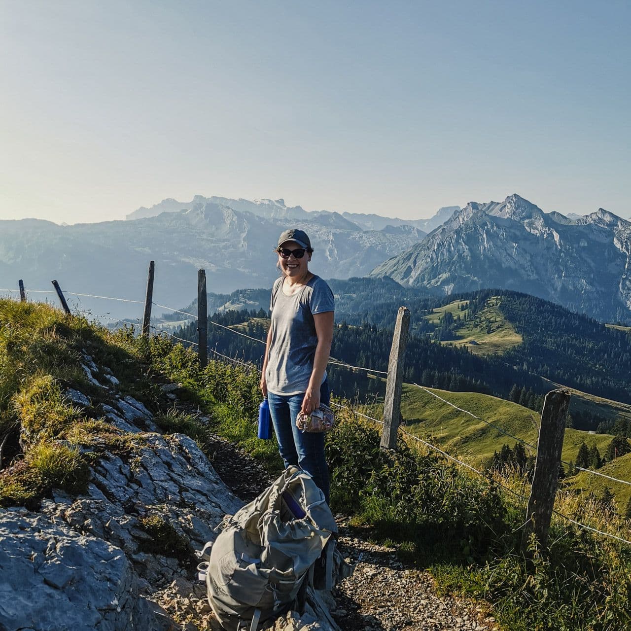 Bereits vor 6 Uhr war tagwach, auf ging es zu unserem Gipfelziel, dem Chline Aubrig. Nach knapp 2 Stunden gab es glücklich Brot und Wasser auf dem Gipfel zum Frühstück. Etwas unter Zeitdruck wanderten wir den gleichen Weg zurück, hatten gerade noch Zeit für einen Kaffee to go beim Beck zu holen und schon ging es mit dem Bus zurück ins Büro. Zufrieden und mit schönen Erinnerungen im Hinterkopf sind wir in den Arbeitstag gestartet.